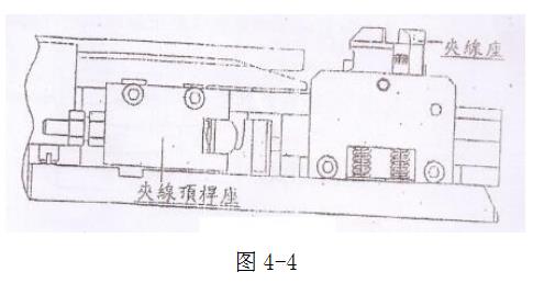 c.在手動方式狀態(tài)下,按控制面板上寸動按鍵旋轉(zhuǎn)剝皮系統(tǒng)主軸,確認夾線頂桿座是否能帶動夾線座做夾線動作,如圖4-4。