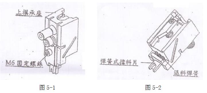 注意:裝回上刀片時請確認裝回方向是否正確,并需將各上刀片推至上模承座內(nèi)高點并上下推動彈簧式擋料片,確認彈簧式擋料片可以上下靈活動作,如圖5-2。