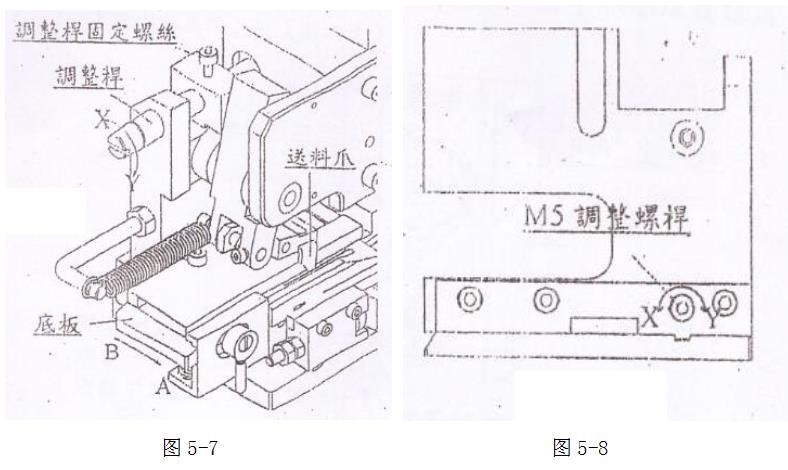 注意:M5調(diào)整螺桿X方向(圖5-8)旋轉(zhuǎn),導底板會往A的方向(圖5-7)移動;M5調(diào)整螺桿Y方向(圖5-8)旋轉(zhuǎn),導底板會往B的方向(圖5-7)移動。