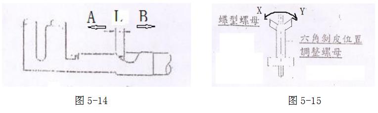 調(diào)節(jié)六角剝皮位置調(diào)整螺母可以調(diào)節(jié)剝皮位置從而改變端子壓接位置,如圖5-14,圖5-15。