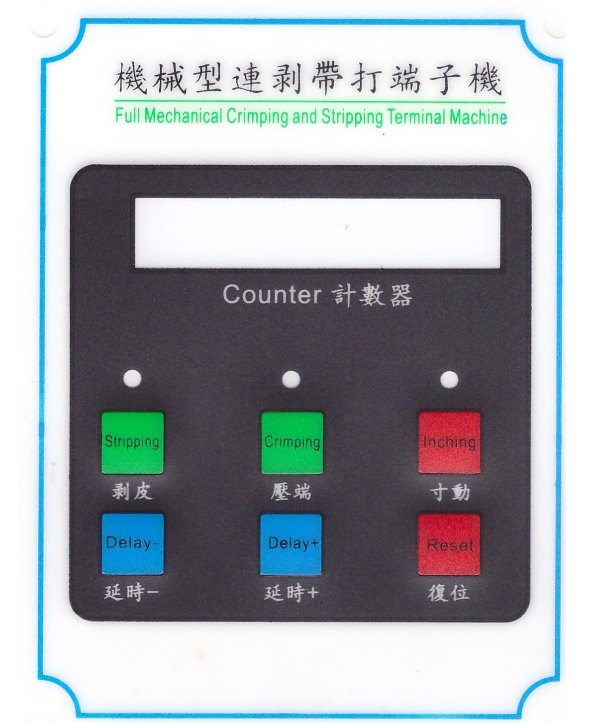 打端:打開或關(guān)閉剝皮功能,按下時相應(yīng)指示燈亮為功能打開。